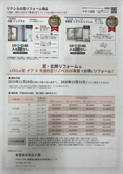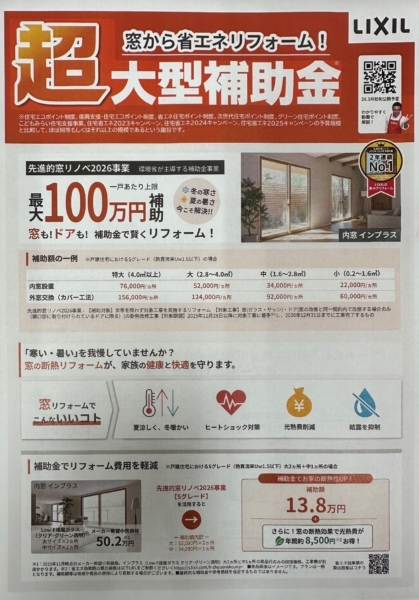 超大型補助金2026始まってます! 超大型補助金 窓から省エネリフォーム 先進的窓リノベ2026事業 (環境省が主導する補助金事業) 窓も!ドアも!補助金で賢くリフォーム! 補助金申請はお任せください! 2023年から当社実績多数。 2026/01/30 10:00 Tweet